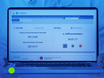 View all of your RPM and CCM patients in a single dashboard to ensure that you and your team are meeting billing thresholds. The 2 Morrow Health platform allows you to easily document time spent by the care team on non face to face activities, so you can spend more time focusing on patient care.
